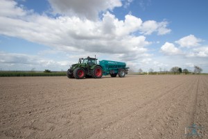 Chantier d’épandage de pellets organiques – Sulky XT160 – Fendt 720