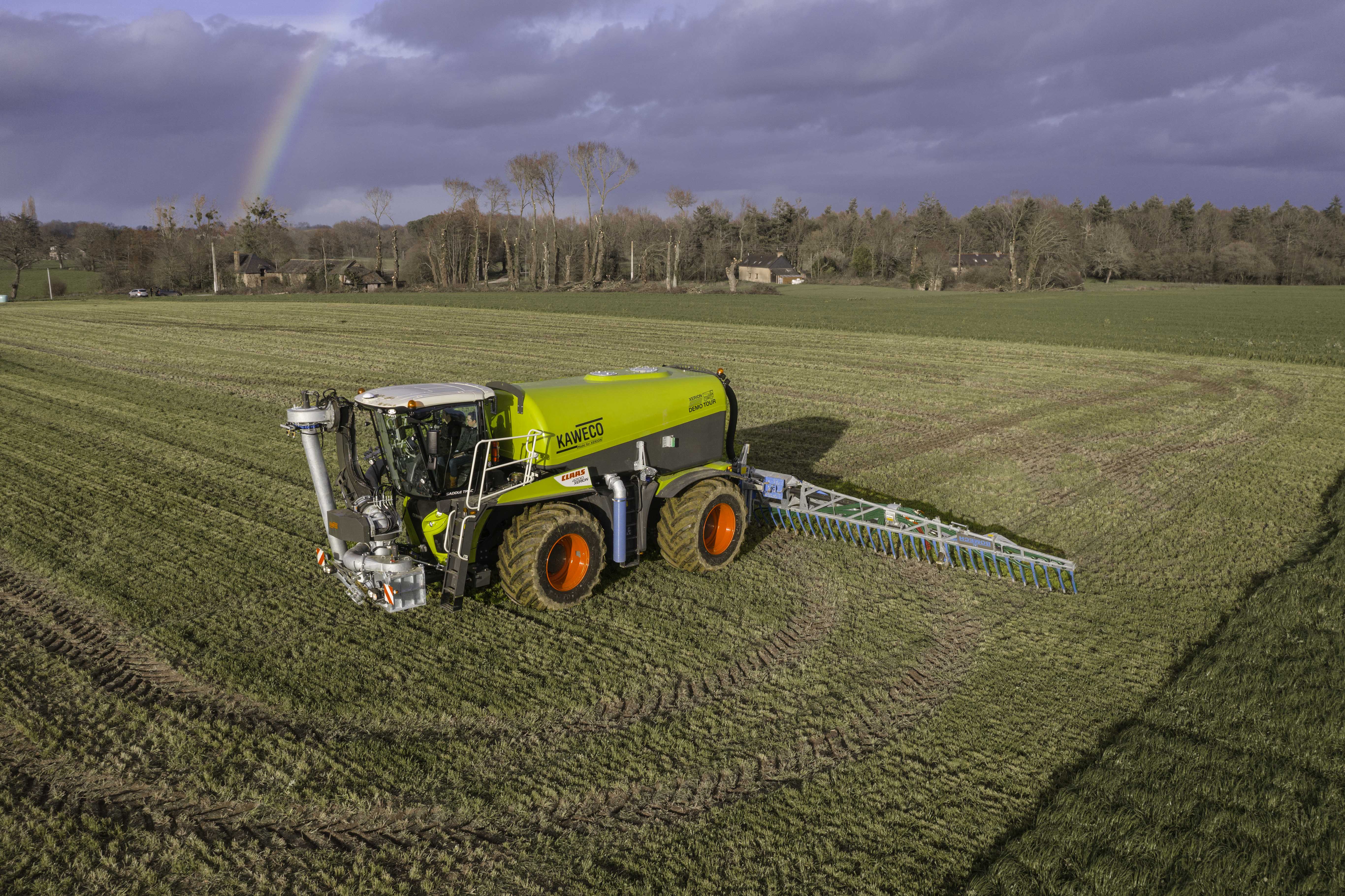 L’entreprise Allemande, CLAAS, a depuis plus d’une dĂ©cennie, son modĂšle XERION en version Saddle Trac, ce qui veut dire, sellette, pour acceuillir soit un cuve Ă lisier ou un Ă©pandeur solide.
