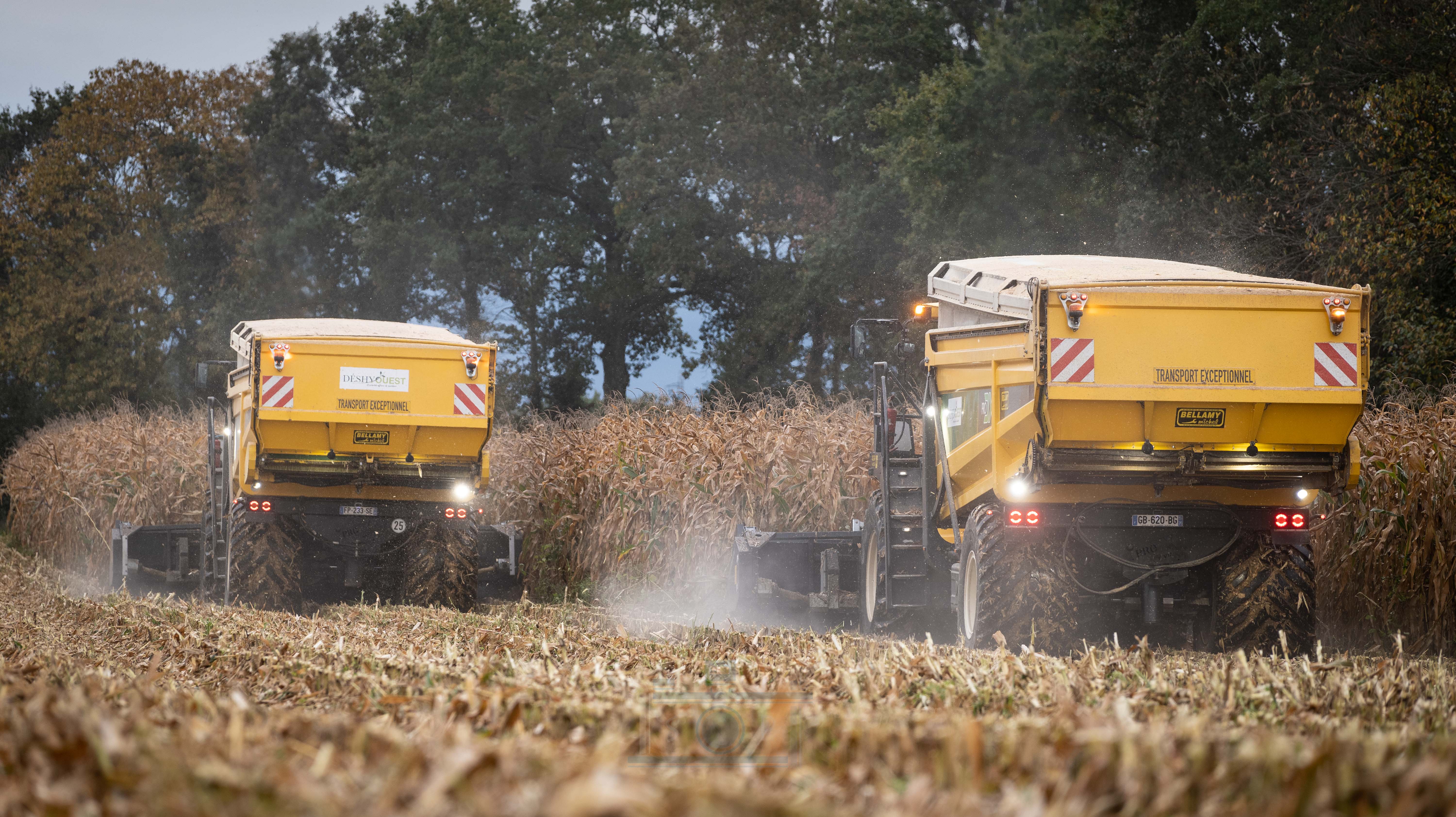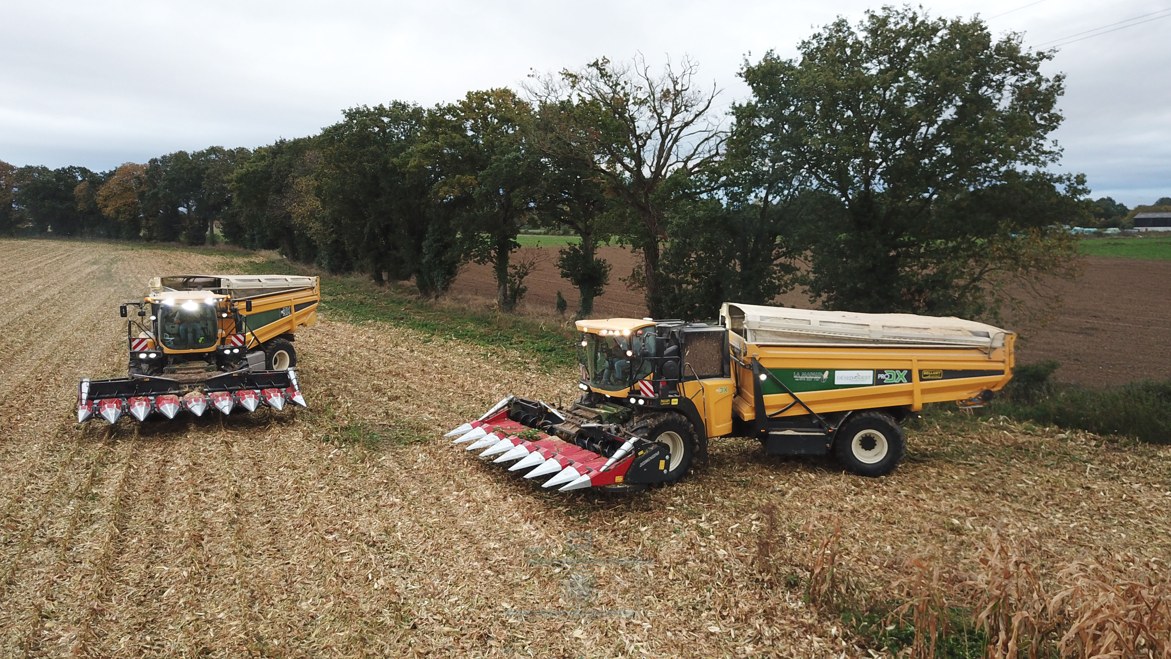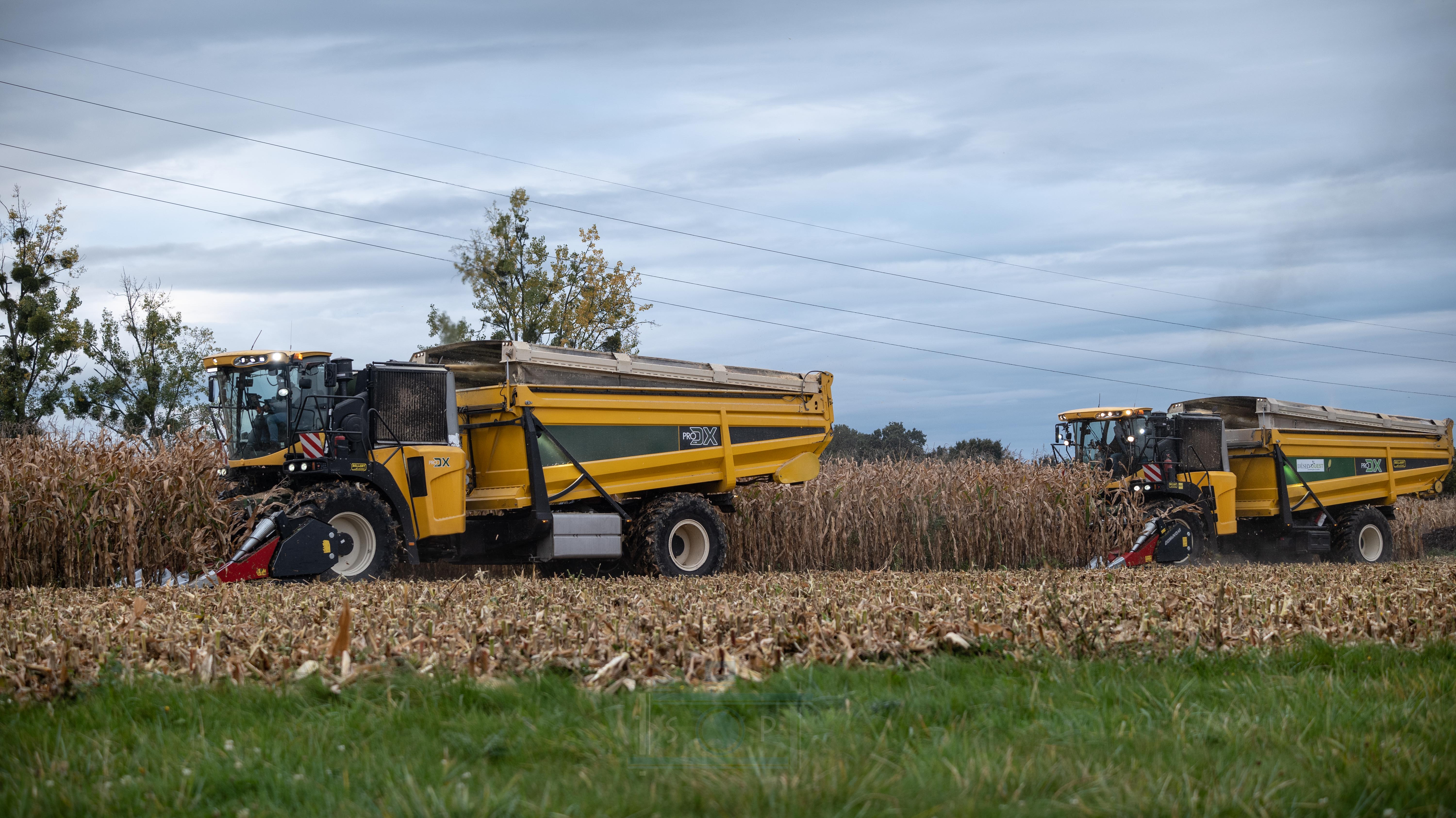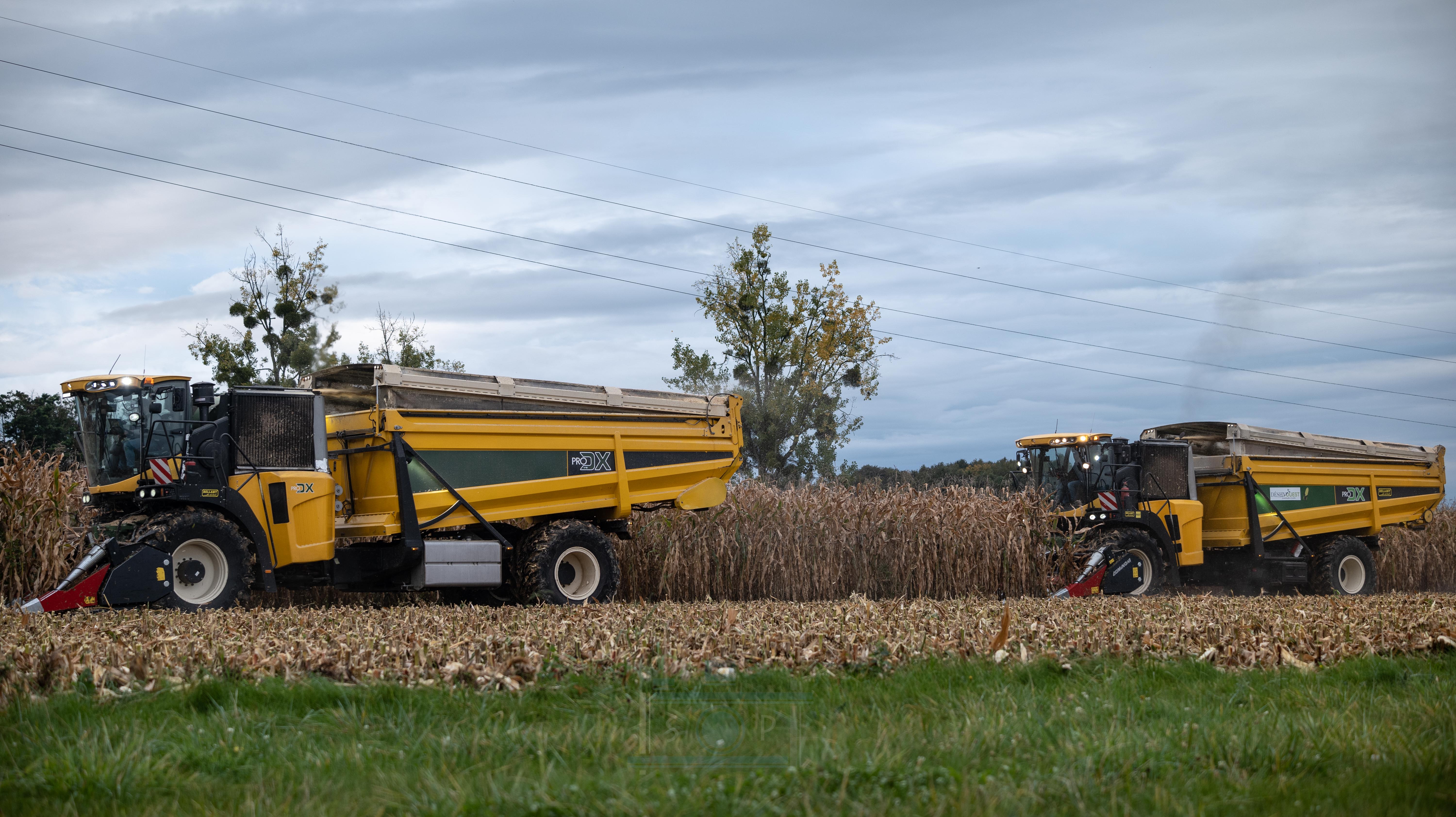 Bonjour à tous, aujourd’hui je vous présente ma dernière vidéo. La récolte de maïs épis avec la coopérative de déshydrations des fourrages Déshyouest. La coopérative faisant partie de ma commune, j’ai pour habitude de voir passer les machines depuis mon plus jeune âge. Imaginez, vous avez 7-8 ans et vous voyez passer ces énormes monstres de 1200Cv. Autant vous dire qu’à l’époque, même si elles n’existaient pas et que leurs prédécesseur étaient plus petites, j’étais toujours impressionné (à l’époque c’était des New Holland FX à caisson, de fabrication Racine). Aujourd’hui, elles posent devant mes objectifs. Grâce à l’organisation de Brian, Romain, Adrien et Valentin, 3 des 4 PRODX de l’entreprise ou pu être réunis pour réaliser cette vidéo. Je les remercie pour toutes l’organisation que cela ait demandé. On ne se rend pas compte, mais il faut le parcellaire, les camions, l’alimentation de l’usine etc.