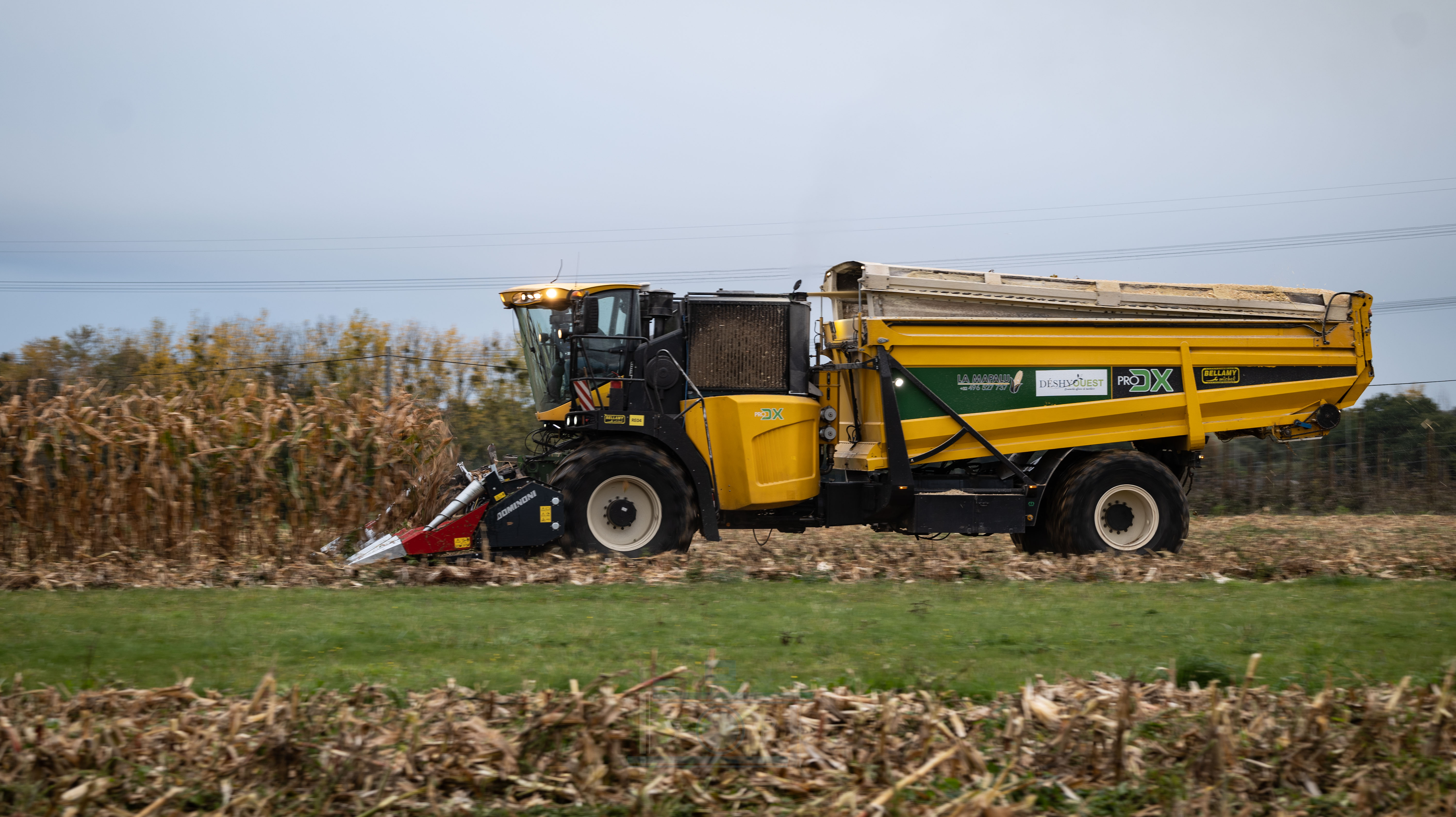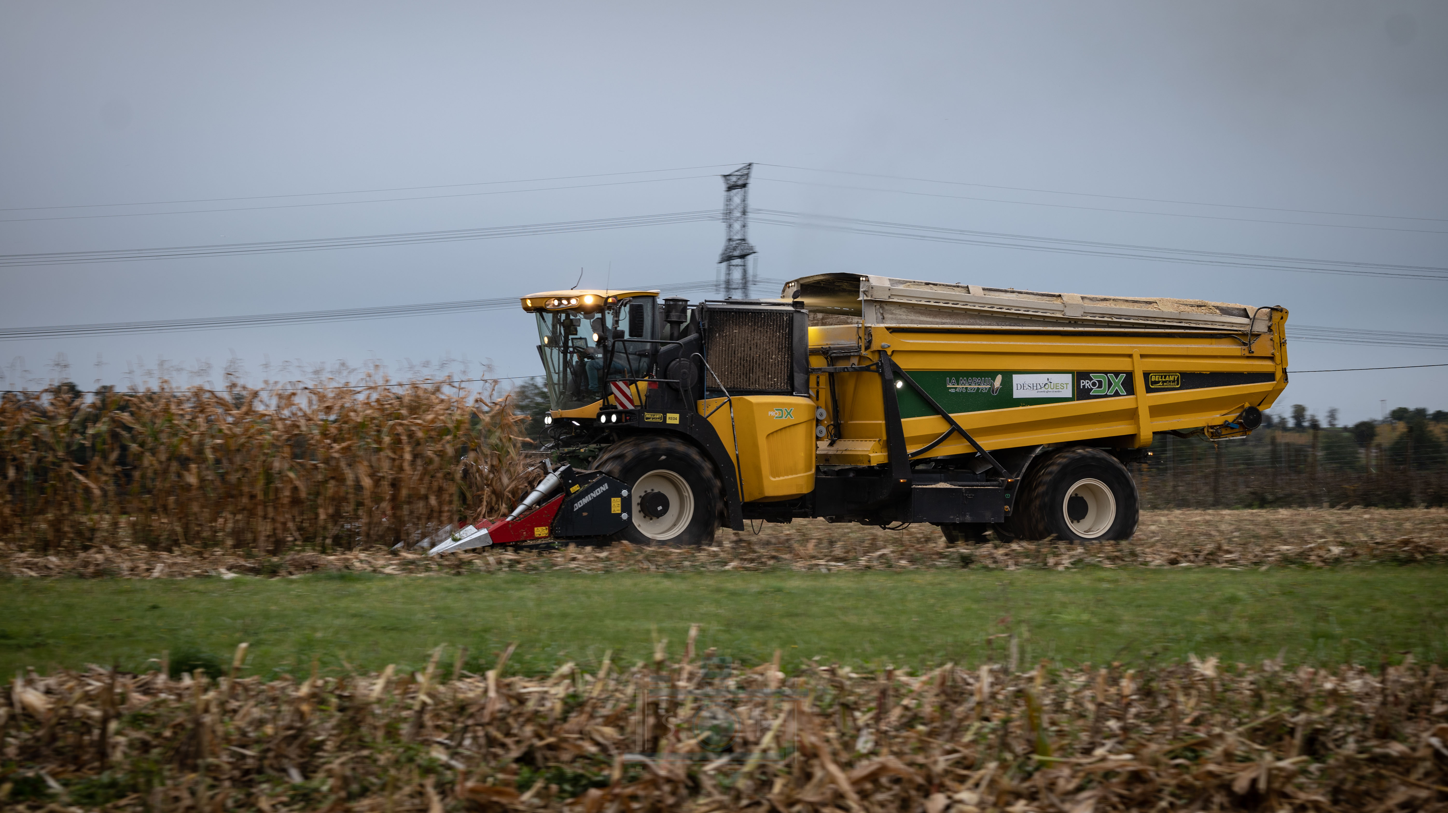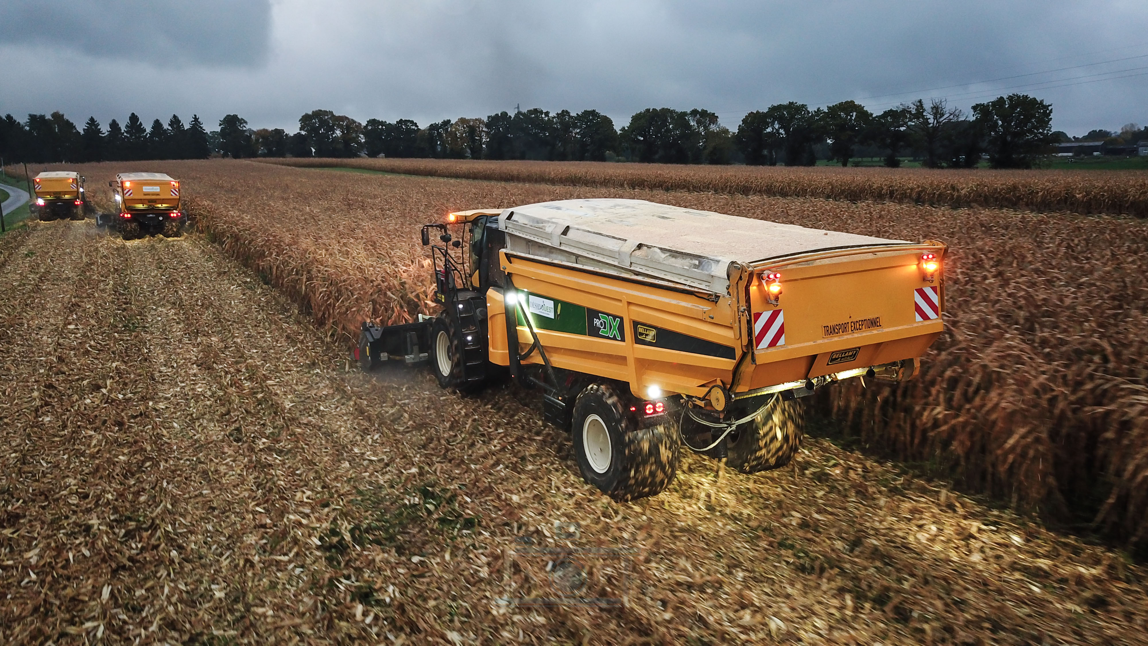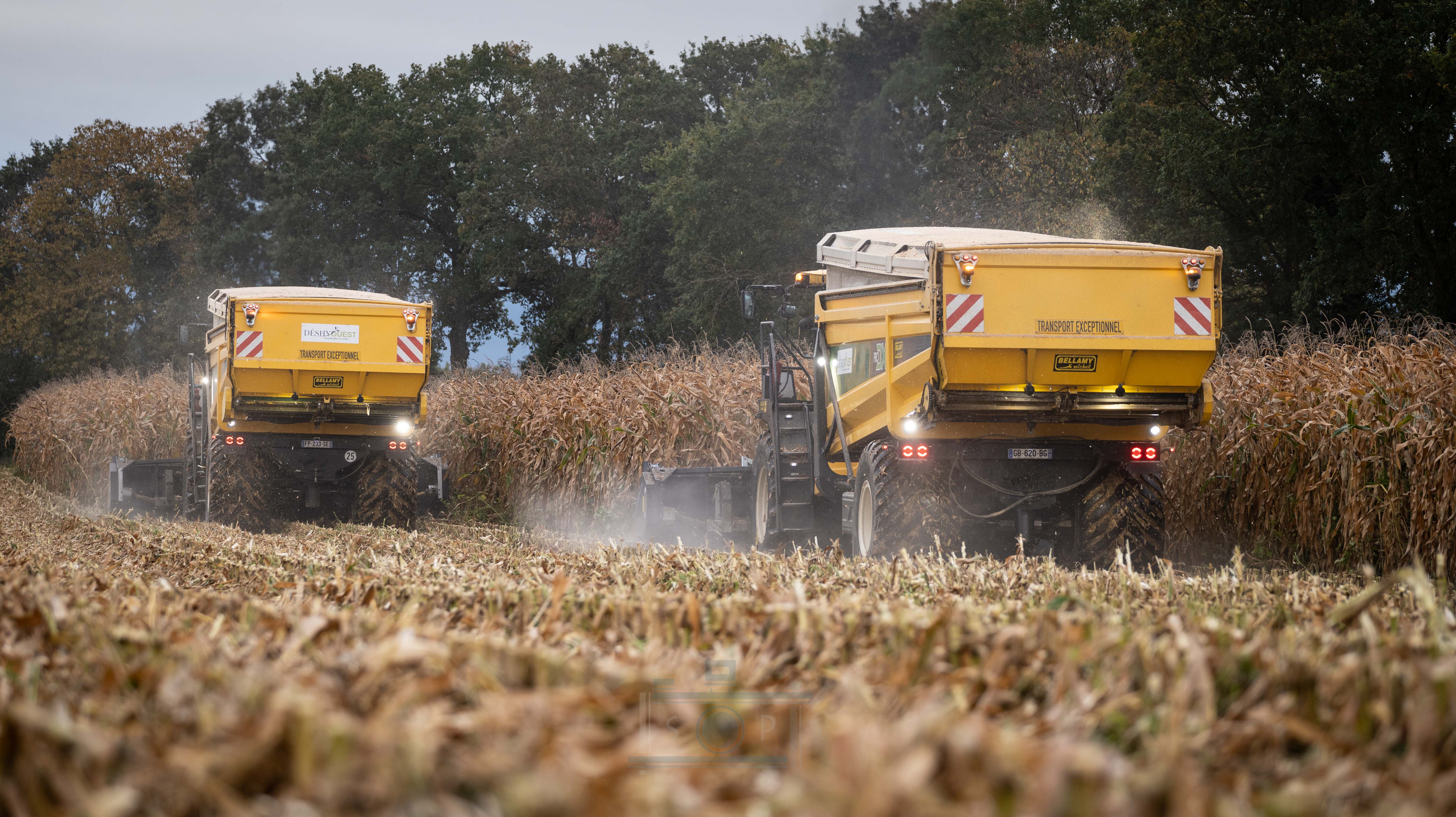 Bonjour à tous, aujourd’hui je vous présente ma dernière vidéo. La récolte de maïs épis avec la coopérative de déshydrations des fourrages Déshyouest. La coopérative faisant partie de ma commune, j’ai pour habitude de voir passer les machines depuis mon plus jeune âge. Imaginez, vous avez 7-8 ans et vous voyez passer ces énormes monstres de 1200Cv. Autant vous dire qu’à l’époque, même si elles n’existaient pas et que leurs prédécesseur étaient plus petites, j’étais toujours impressionné (à l’époque c’était des New Holland FX à caisson, de fabrication Racine). Aujourd’hui, elles posent devant mes objectifs. Grâce à l’organisation de Brian, Romain, Adrien et Valentin, 3 des 4 PRODX de l’entreprise ou pu être réunis pour réaliser cette vidéo. Je les remercie pour toutes l’organisation que cela ait demandé. On ne se rend pas compte, mais il faut le parcellaire, les camions, l’alimentation de l’usine etc.